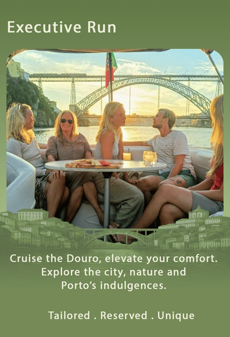 Cruise the Douro in comfort, enjoy curated moments with Port wine and light bites, and extend the journey toward nature or the Atlantic breeze at confident cruising speed.